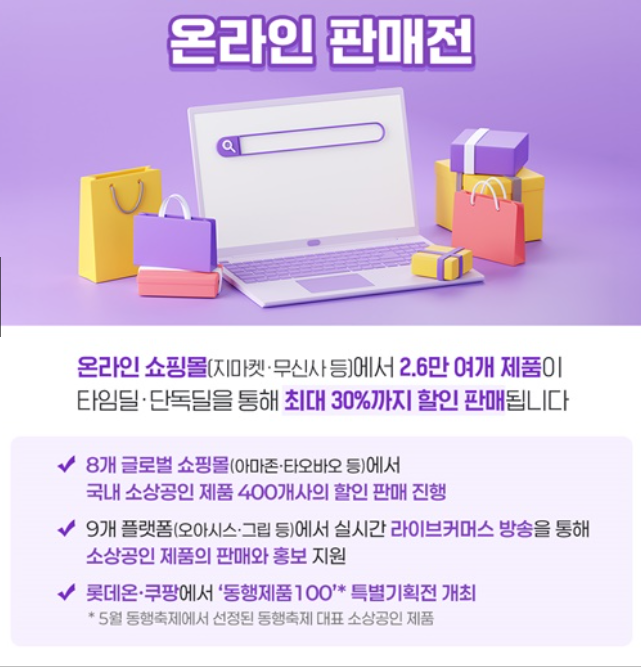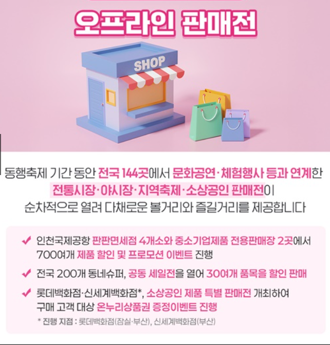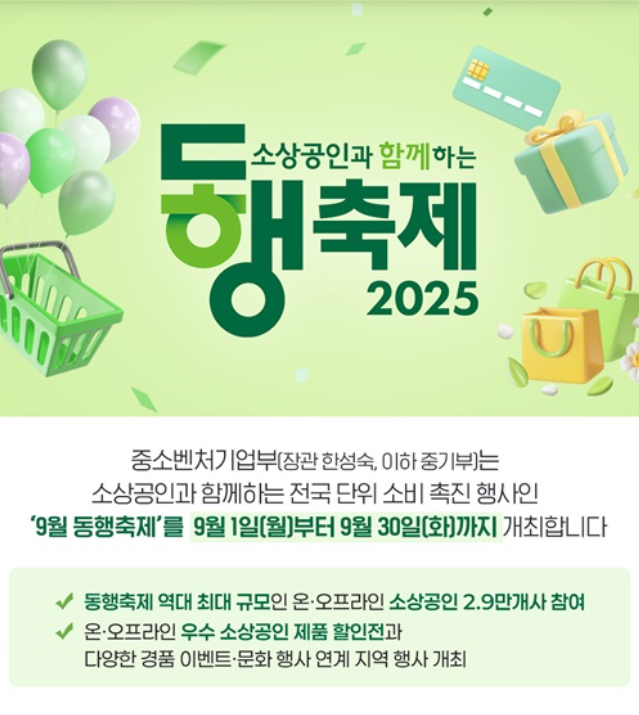이번 9월, 전국 어디서든 열리는 동행축제에 함께 참여해 소상공인을 응원하고 알뜰 쇼핑도 즐겨보시기 바랍니다.