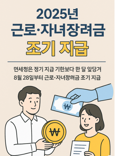 2025년 근로장려금 정기 신청분은 8월 28일(목)부터 지급이 시작됩니다.