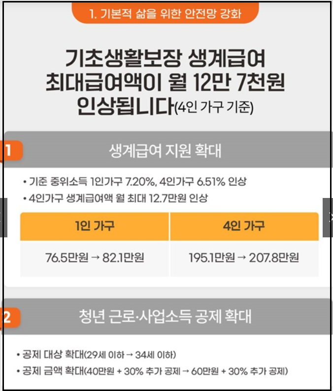 정리하면, 생계급여 인상은 저소득 가구의 즉각적 생활안정에 기여하고, 청년 공제 확대는 노동시장 참여를 촉진하여 장기적 빈곤의 악순환을 끊는 데 도움이 됩니다.
