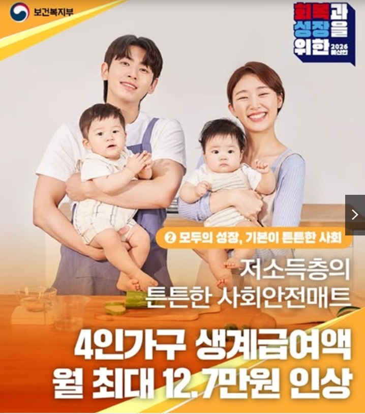 2026년 예산안의 핵심은 무엇보다 기초생활보장 생계급여의 현실적 인상입니다.