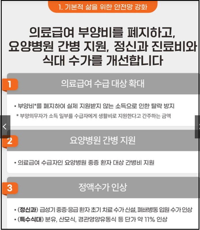 의료분야에서는 무엇보다 의료급여의 부양비 폐지가 눈에 띕니다.