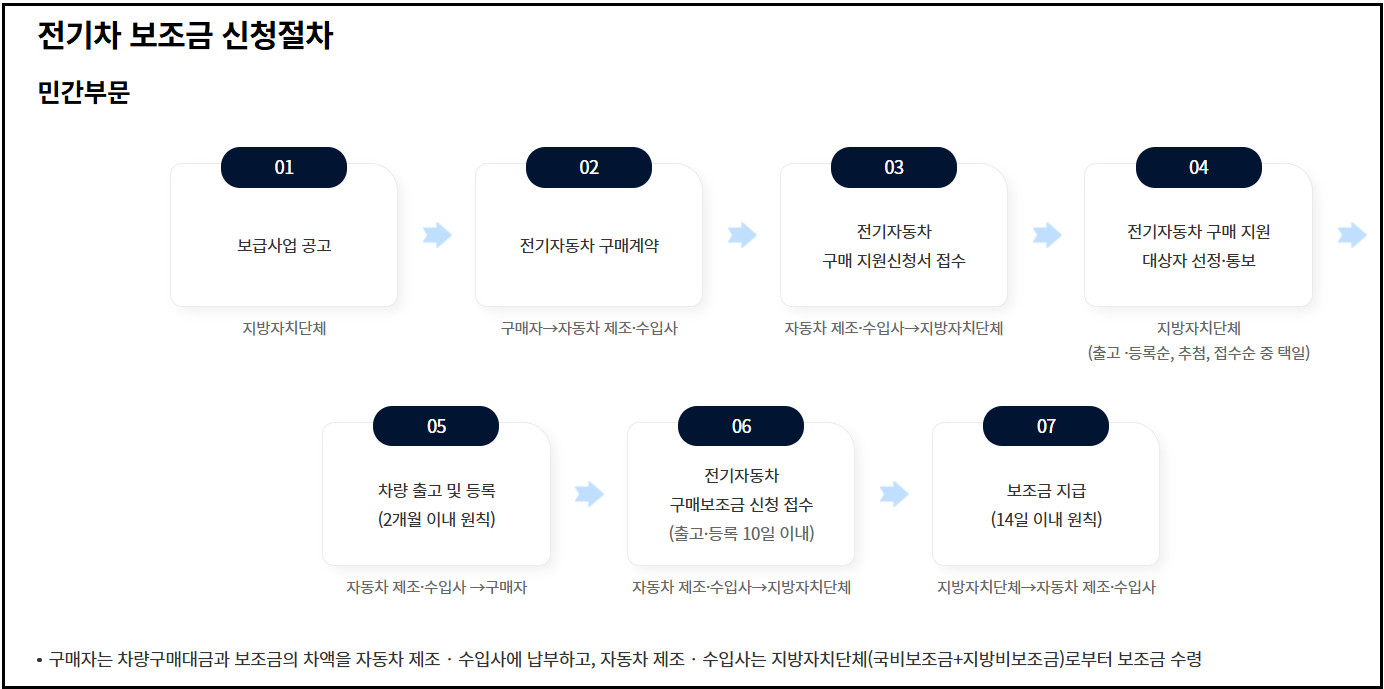 - 대상 차량: 전기승용차 등 보조금 대상 차종(차종별 보조금 상이).