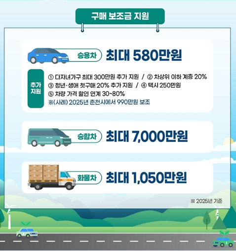 전기차 보조금 - 청년·다자녀·차상위 등에 추가 지원