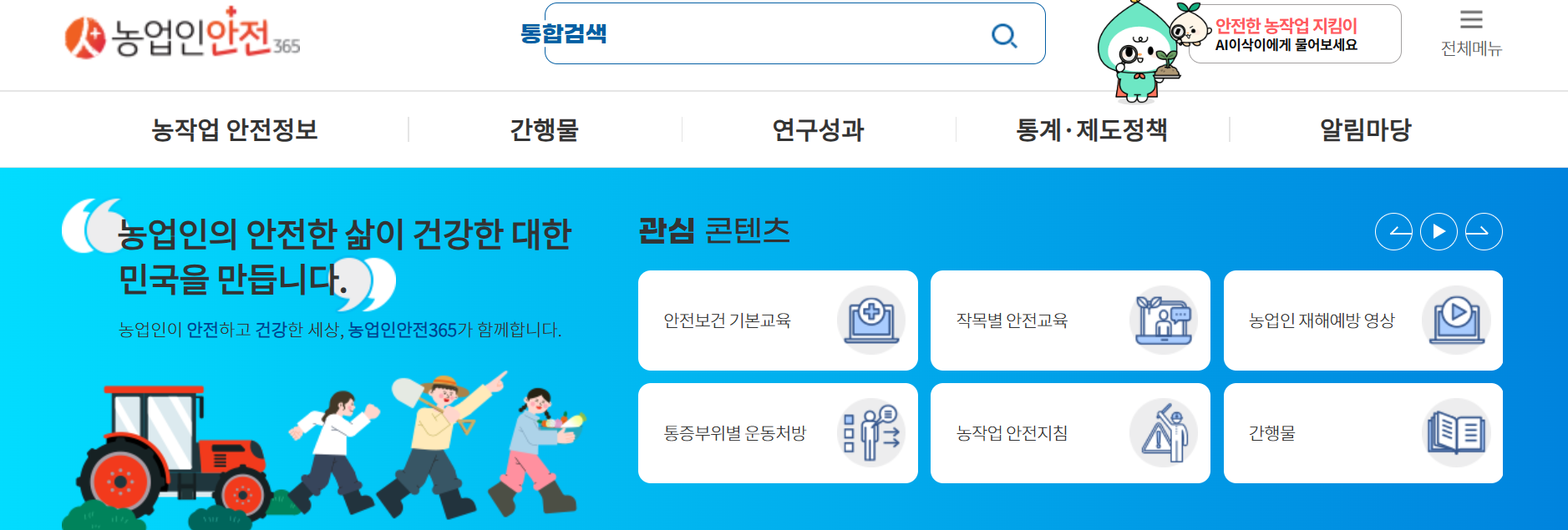 예방 정보 확인 - 농업인 안전 365 누리집 활용하기