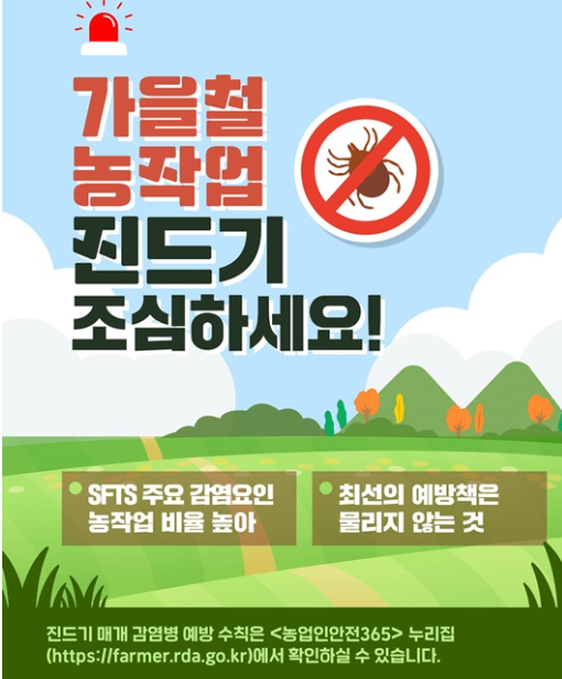 특히 면역력이 약한 고령층이나 기저질환이 있는 농업인에게서 치명적일 수 있어, 무엇보다 물리지 않는 생활습관이 중요합니다.