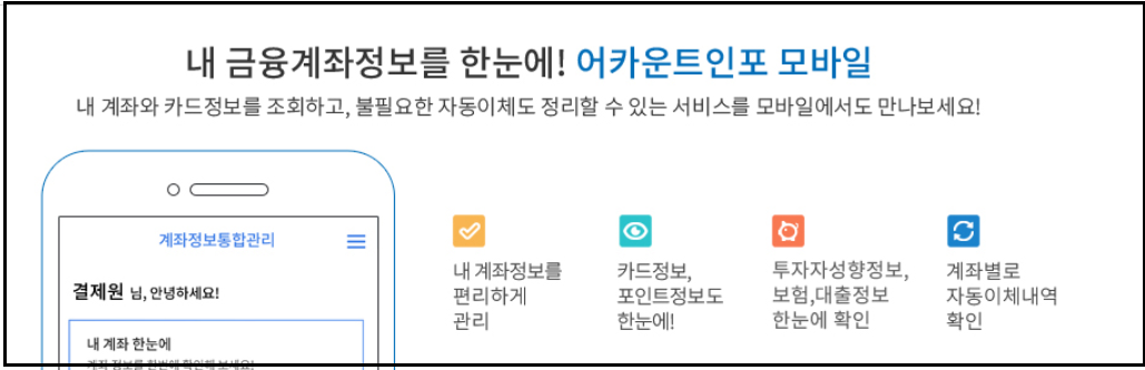 - 은행·보험·증권 등 전 금융권 계좌를 확인 가능