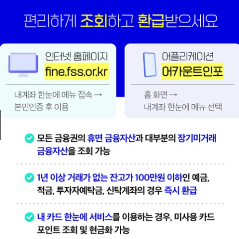 - 은행권에서 운영하는 서비스로, 휴면예금·적금·보험금 등을 조회 가능