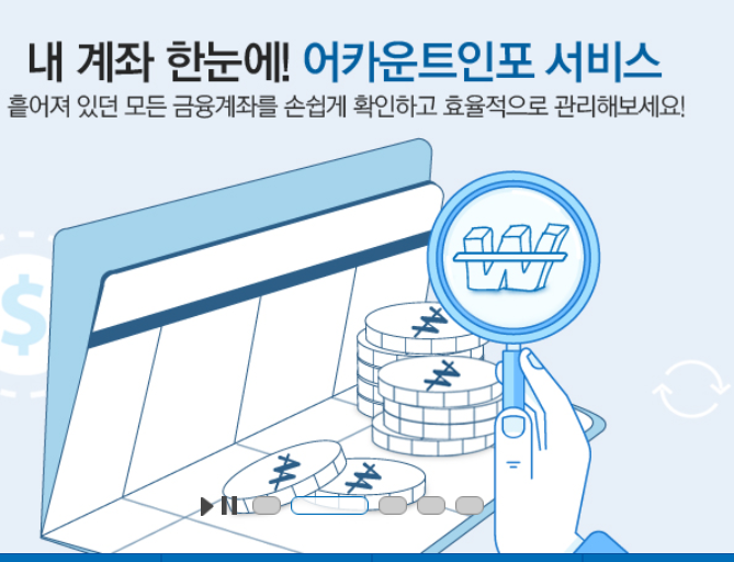 파인, 어카운트인포, 계좌정보통합관리서비스를 통해 빠르고 간편하게 조회하고 환급받을 수 있으니, 지금 바로 확인해 보시는 것을 권장드립니다.