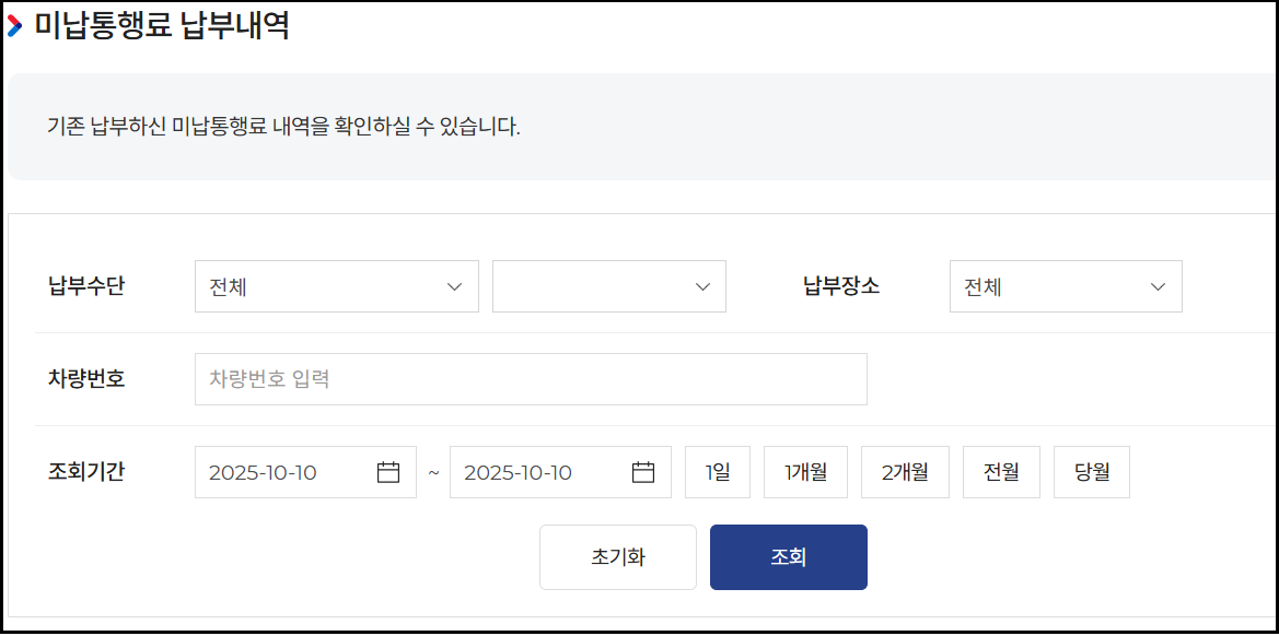 - 미납요금은 통행 후 3~4일 후부터 조회 가능합니다.