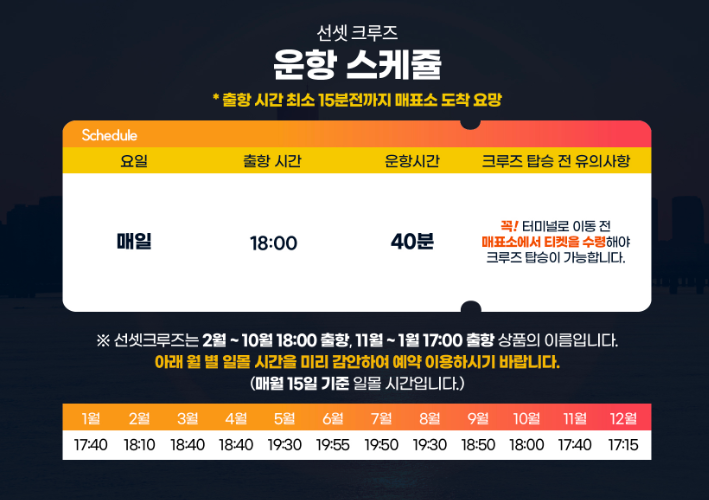 선셋 크루즈 | 18:00 | 매일 운항 |
