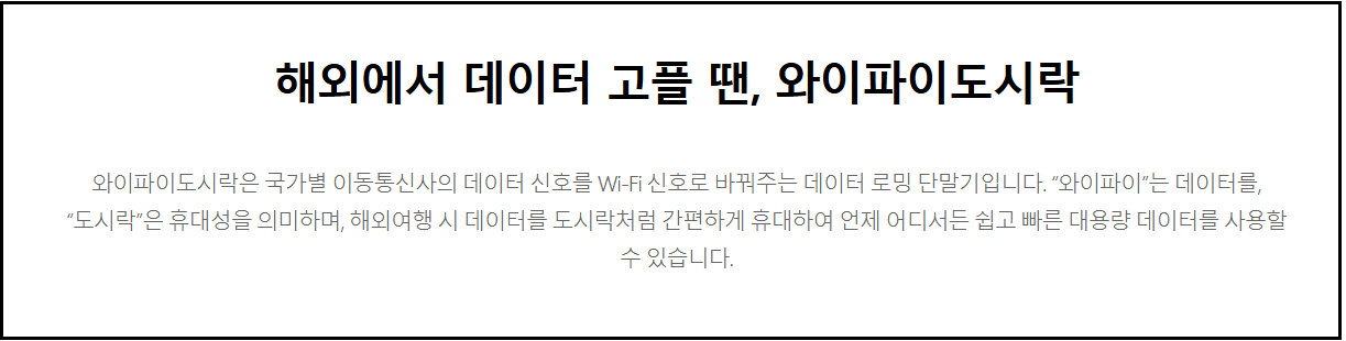 데이터 로밍은 비싸고, 현지 유심은 번거롭다면 와이파이 도시락(Wi-Fi 도시락)이 최고의 대안이 됩니다.