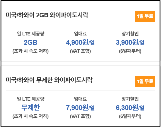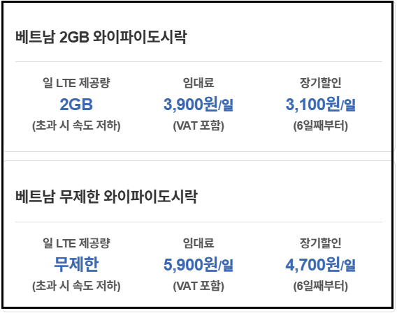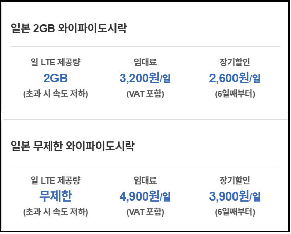- 대여형(포켓 와이파이) : 공항이나 택배로 기기를 받아 사용하는 전통적인 방식
