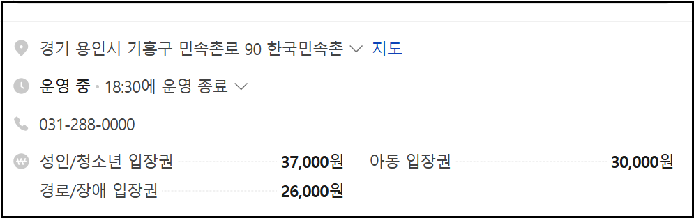 한국민속촌 입장료 안내