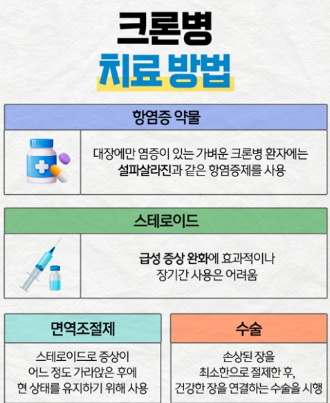 특히 소장 끝부분(회장)과 대장에서 많이 발생하며, 염증이 장벽 전체에 걸쳐 진행되는 특징이 있습니다. 완치가 어렵지만 약물치료, 식습관 관리, 생활습관 개선을 통해 증상을 조절할 수 있습니다.