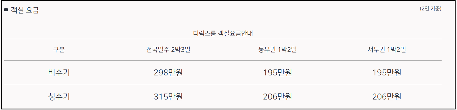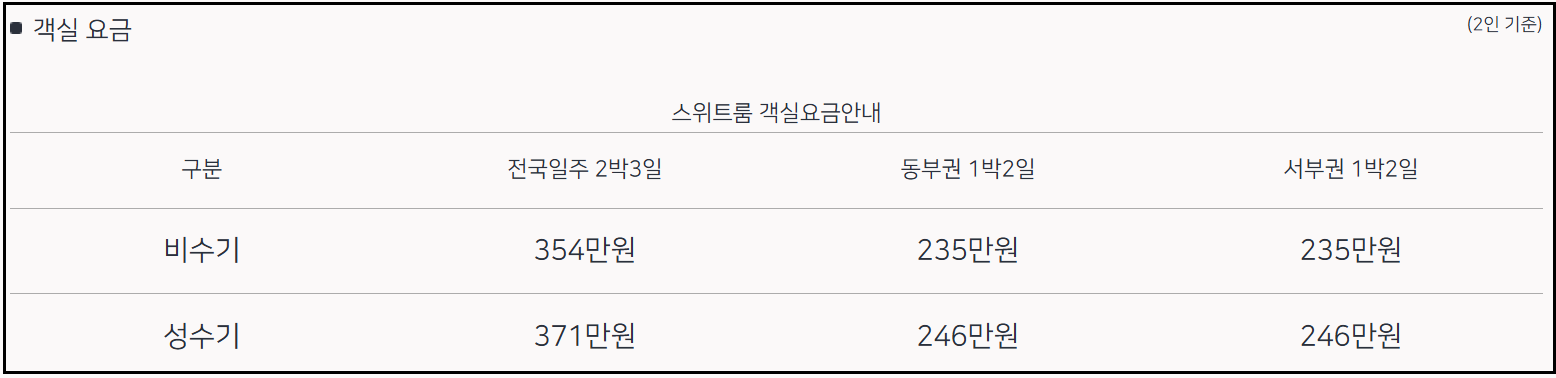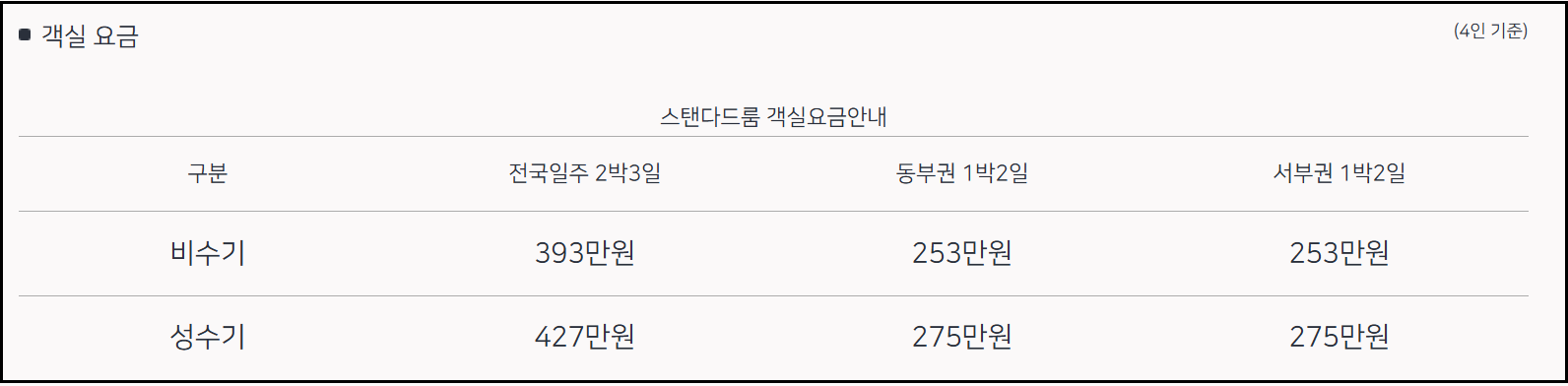 약 230만~250만 원대 - 스탠다드룸(4인)