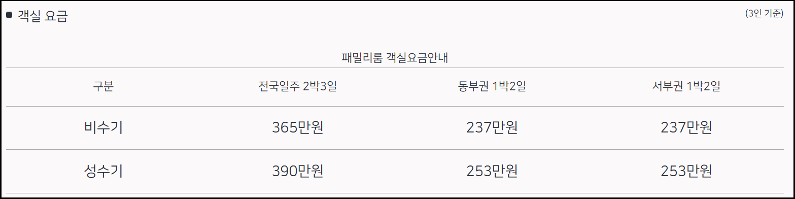 약 360만~390만 원대 - 스탠다드룸(4인)