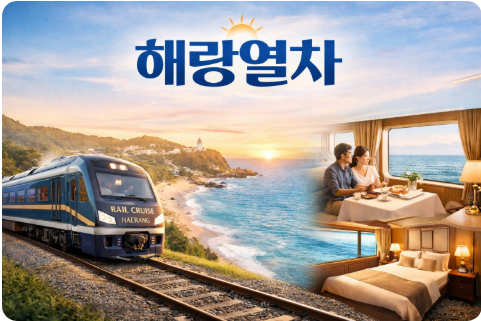 국내에서 단 하나뿐인 숙박형 프리미엄 관광열차, 해랑열차는 이동·숙박·식사·관광이 모두 포함된 특별한 기차 여행 상품입니다.