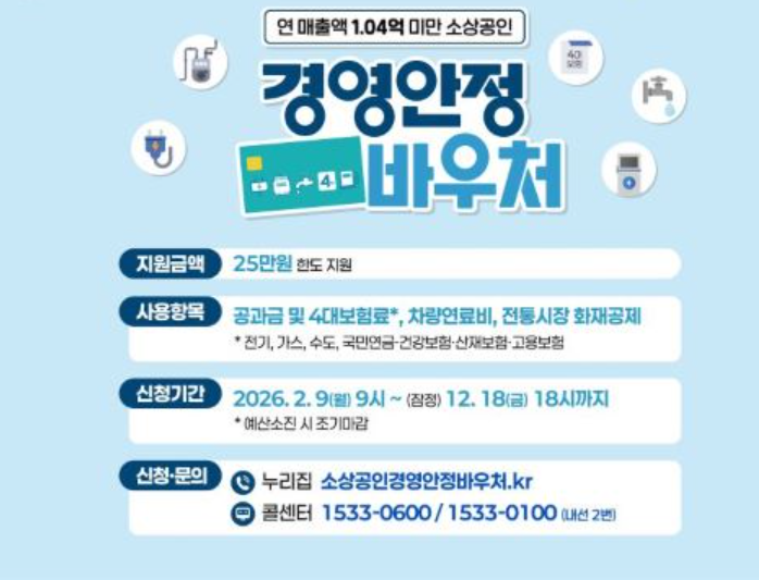 전기요금, 가스요금, 4대 보험료처럼 매달 빠져나가는 고정비 부담을 덜 수 있는 ‘소상공인 경영안정 바우처’ 신청이 오늘(2월 9일)부터 시작됐습니다.