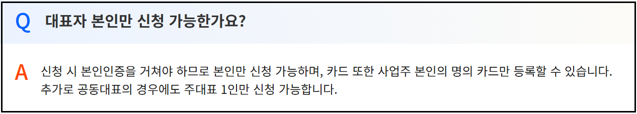 - 공동대표 사업체도 주 대표자 1인만 신청 가능
