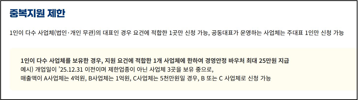 - 1인이 여러 사업체를 운영해도 1개 사업체만 신청 가능