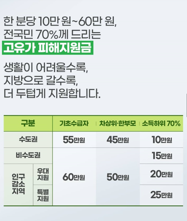 고유가 지원금은 전 국민이 아닌, 소득 기준을 충족하는 국민 약 70%를 대상으로 지급됩니다.